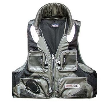 - Жилет рыболовный поддерживающего типа, оснащен вынимаемыми вставками из PE с избыточной плавучестью. Имеет подъемную силу 7,5 кг и способен удерживать на плаву человека весом до 120 кг.